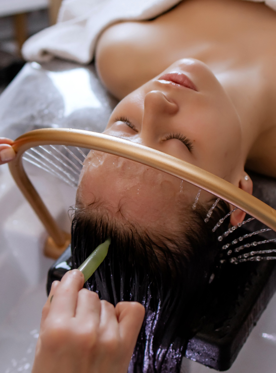 Our Head Spa treatment focuses on relieving tension in the scalp, neck, and shoulders. This relaxing therapy improves blood flow, supports scalp health, and provides deep mental and physical relaxation.