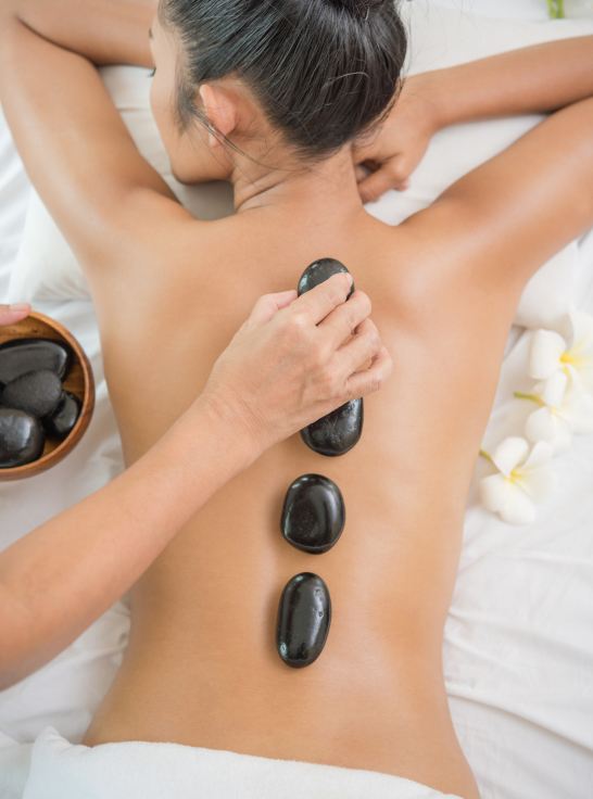 Our Hot Stone Spa treatment uses smooth, heated stones to gently massage and relax the body. The warmth helps release tight muscles, relieve stress, and restore balance. This deeply calming experience promotes relaxation from head to toe.